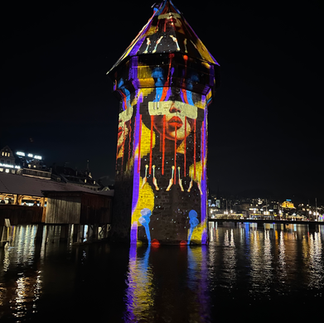 One could consider it the he heart of the festival - as much as it also is, in a way, the heart of the city. Light reflections on the water, installations along the lake - just imagine that iconic Lucerne postcard, but upgraded by night.